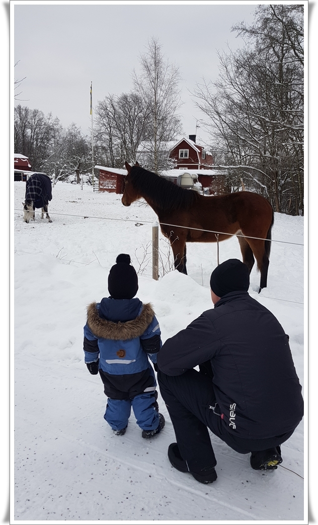 Vilken tur att hästarna var ute när vi kom. En av hästarna gjorde värsta duckface-minen så vi skrattade gott.