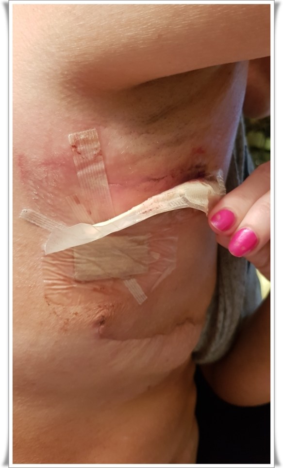 Strax före 22 gick jag ner och skulle hänga en tvätt och kände att shit vad blött det känns på sidan. Det sipprade sårvätska….. så jäkla äckligt! Fick lätt panik och kastade mig på telefonen och ringde Milla O som är disktriktssköterska. Men alltså att man kan ha en så lugn, trygg och fin vän, så tacksam 💕