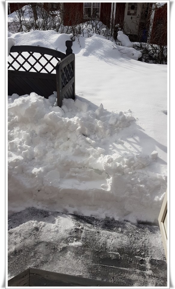 Skulle vilja kunna sitta på altan när det är så fint men det är så mycket snö så det blir väl först till midsommar 😕