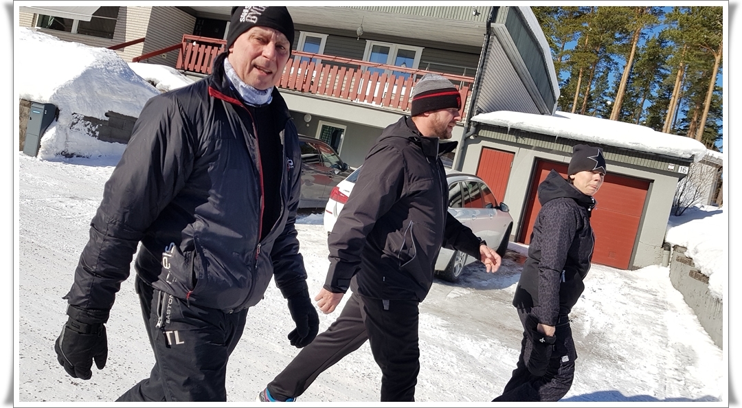 Chrille & Milla kom promenerandes till oss på fm. Vi gick alla fyra till Vallrundan och kollade på skidorna innan Tex och jag gick hem igen. Blev i alla fall drygt 4 km.