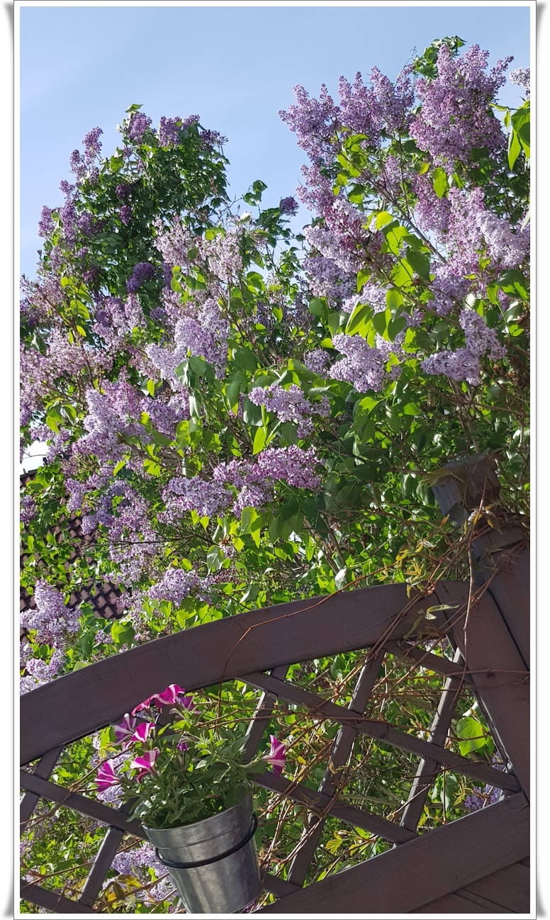 For runt som en dåre och jagade pollen. Spolade av hela altanen, dammsög, torkade köksstolar och golvet krypandes på alla 4. Vet att det ser lika ut i morgon men jag får väl krypa igen då 😋