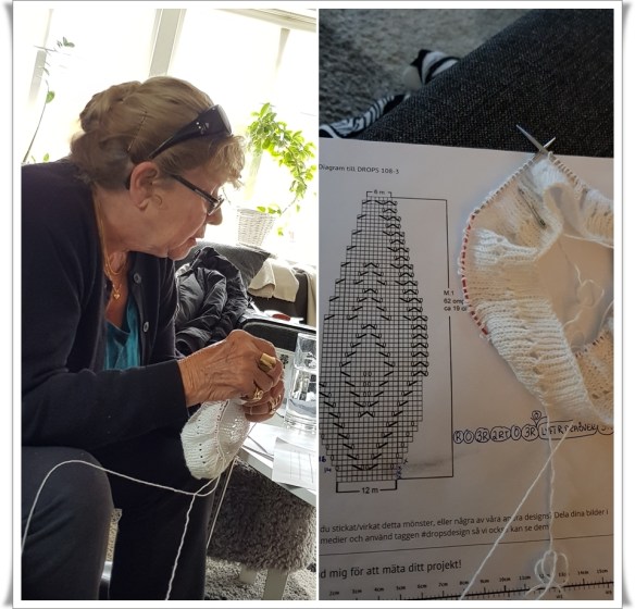 Ringde mamma och sa att hon måste hjälpa mig så hon ilade hit. Mamma har stickat mycket och tyckte faktiskt också att den här beskrivningen var lite svår. Efter många om och men och skratt så fick hon mig att förstå 😂