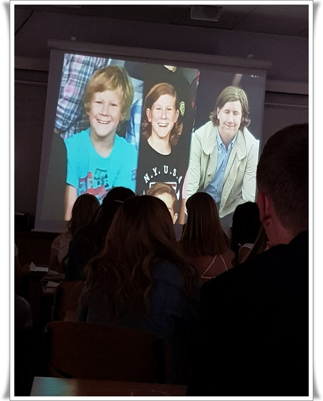 Efter betyg och rosutdelning blev vi bjuden på mingel i klassrummet. Antons mentorer hade gjort en otroligt bra och rolig film om alla elever.