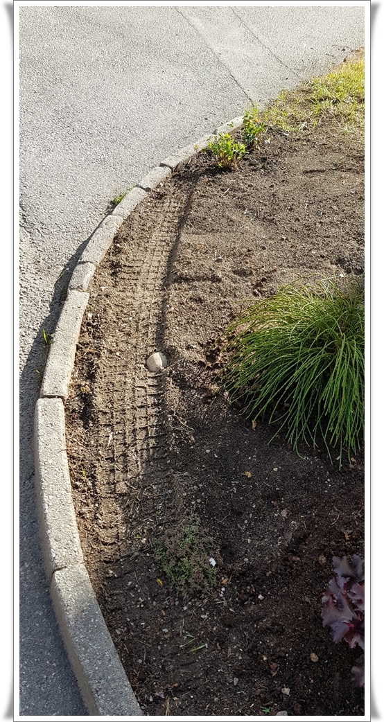 Kom ut och ser att nåt jäkla arsel har dörnat över kanten där jag håller på. Man märker väl om man kör över en kant?? Då får man liksom börja om. Nej men den här människan bara kör vidare!! Människan hade väl åtminstone kunnat sopa igen bilspåren så jag inte sett det 🙄