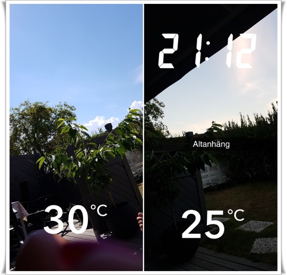 Solen skiner, sitter i solen, tar en promenad i solen, sitter i skuggan, svettas ute, svettas inne.