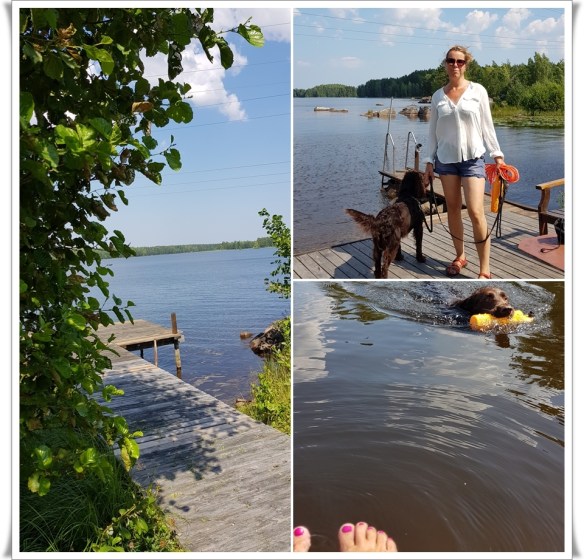 31 grader varmt så vi gick ner till älven där vi trodde det skulle svalka. Gjorde det inte men jag badade fötterna medan Cooper tog en simtur.