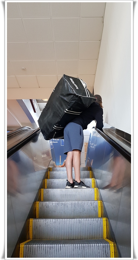Igår packade vi inför Antons resa till USA. Som målvakt blir det en del utrustning. Vet inte riktigt hur jag tänkte. Den gigantiska trunken skulle checkas in och vanliga kläder packas i handbagage….