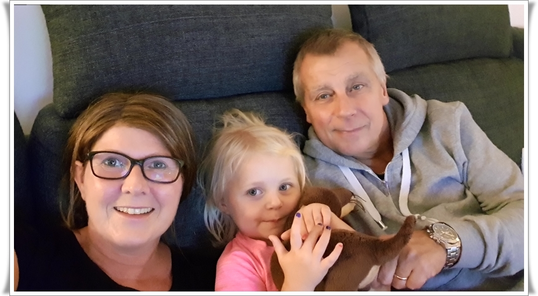 Milly och jag åkte hem och åt makaroner och korv, målade naglarna med både rosa och blått innan farfar och Anton kom hem och vi kunde mysa till Greta Gris ❤