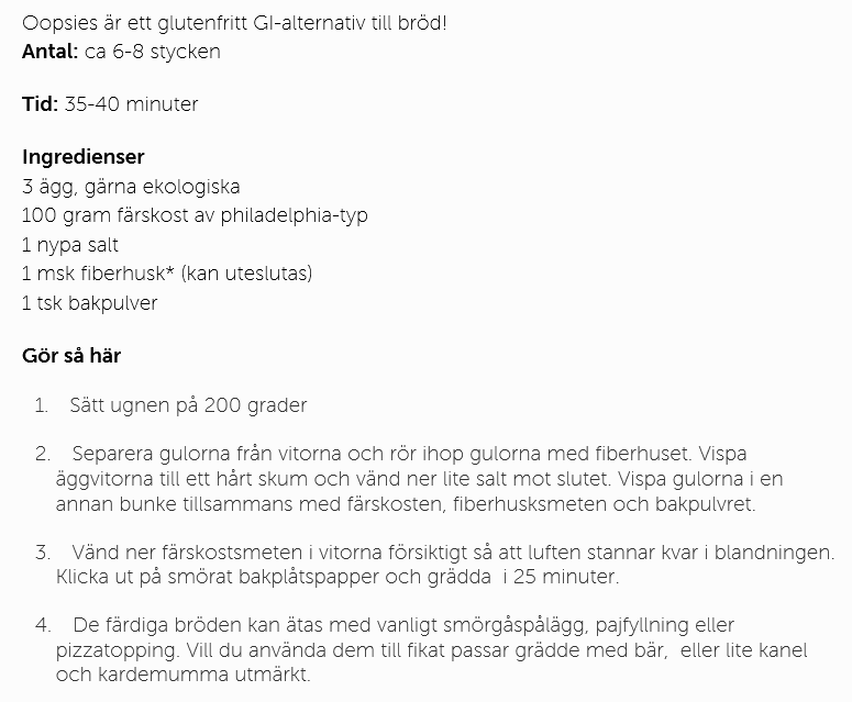 På lördag ska jag testa att göra Oopsies, ser i alla fall gott ut och känns lite nyttigare än mackor. Jag älskar allt som är degigt, pajdeg, smördeg, mjukmackor, scones. Tror det delvis är det som parkerat sig runt min midja 😀