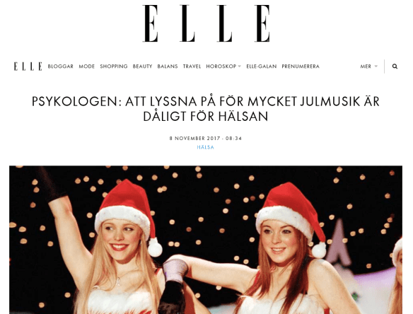 Min favoritradiokanal Lugna Favoriter har spårat ur helt och spelar bara julmusik. Det är gräsligt, jag blir alldeles stressad så nu har jag bytt till Svenska Favoriter. Såg en artikel i Elle och jag visst väl att det inte är bra med julmusik!