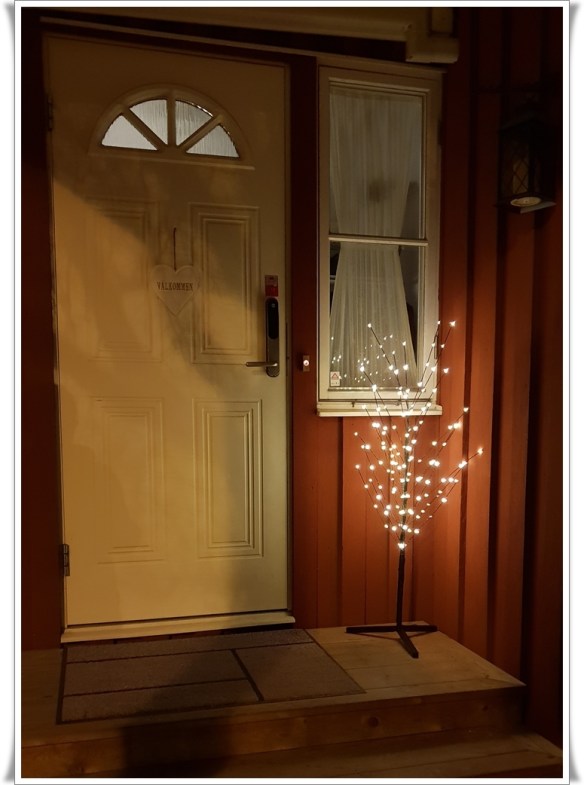 Jag köpte ett dekorationsträd som står utanför dörren och lyser fint i mörkret.