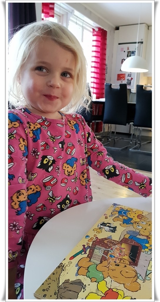 Milly har Bamse som stor favorit och vilken tur att jag sparat en pussel med bamse sen Malin var liten.