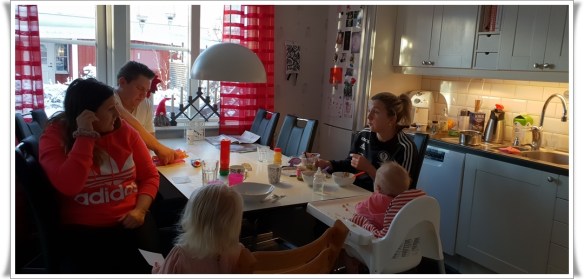 Malin, Tobbe, Marcus och Evelina kom innan det var dags att åka till Alex och Kristin på kalas.
