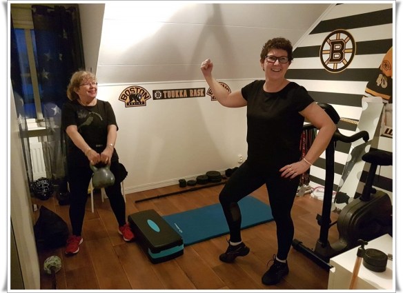 På eftermiddan kom Lena och mamma. Vi körde ett soft gympass i mitt träningsrum 💪 Grymma mamma, snart 78 år. Går med stavar varje dag 30 min och med Svante 2-3 ggr på det. Hon gick på gym i många år men tröttnade när hon var typ 71. Nu är hon igång och vi kör igen nästa söndag 💪👌 och då blir det inte lika soft 🤗