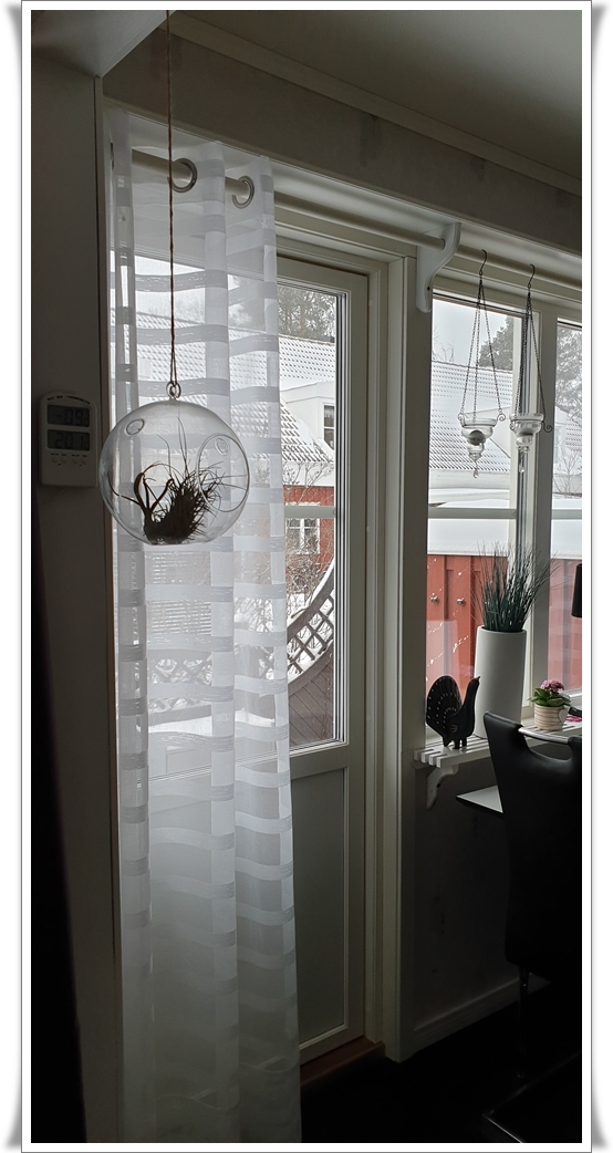 Jaha men då kom vintern tillbaka. Det har snöat mest hela dagen. Jag har inte gjort så jättemycket. Blir lite lat ibland och det får man vara. Jag gjorde ett ryck i tvättstugan och bytte gardiner i köket.