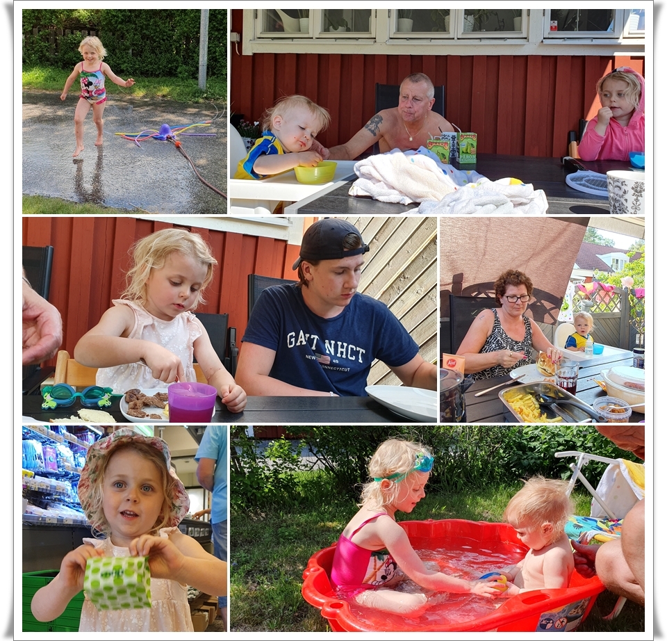 Med sol och nästan 30 grader varmt kunde vi vara ute hela dagen. Tjejerna kunde bada och det är ju skönt att ha lekpark på gården. Gungan, båten och kiosken är favoriter.