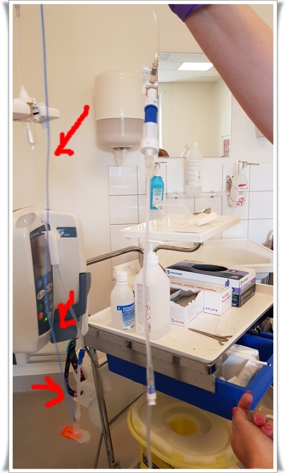 Direkt efter att allt droppat klart tvättade sköterskan med sprit (jag tittade inte) och sekunden efter säger hon att nu är den ute.