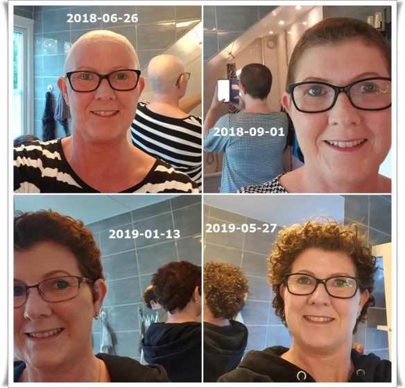 För ett år sedan var jag flintis. Ingen som inte varit flintis kan förstå känslan. Jag var ju inte den som valde att gå utan mössa eller peruk. Nä usch vad hemskt att vara flintis, gräsligt 😣 Jag hade alltid nåt på huvudet som peruk, sjal eller mössa. Trivdes bra så men bara några millimeter hår gör stor skillnad kan jag säga. Kanske var tur att vi inte hade AC då för då hade jag fått sova med mössa. Kallt utan hår förstår ni 😉
