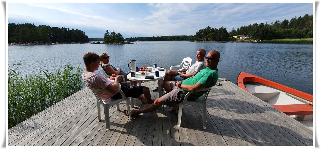 Kaffe på nästa brygga och det kändes ungefär som vi var med i Renées Brygga och vi var gäster 😊