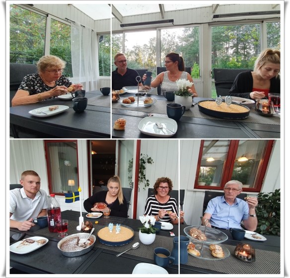 Som vanligt var det svårt att få till det med alla men vi som kunde fick en jättetrevlig fikastund och vi konstaterade att det oftast är fint väder när Lena fyller.