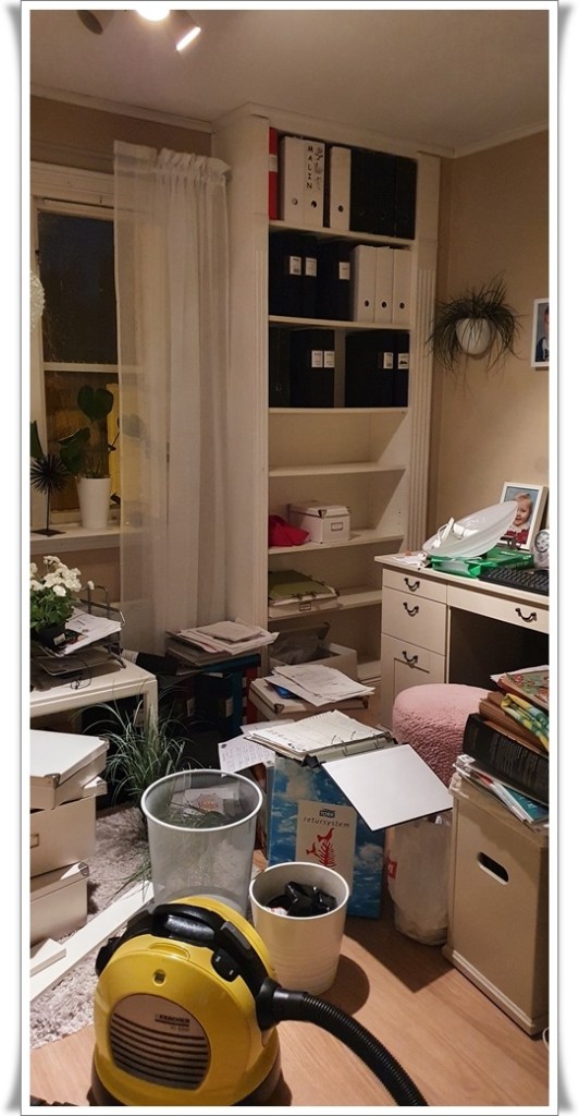 Jag började rensa i lillrummet för flera dagar sen och det känns som jag aldrig blir klar. Blir bara rörigare och rörigare