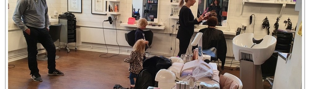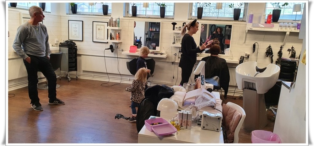 Hann med en korv innan Anton och jag åkte till Evelina på salongen. Anton blev klippt och jag fick nya färg i håret vilket var välbehövligt. Jag klippte av lite och gud så skönt det är när inte håret är lika kompakt. Imponerad att tjejerna orkar och kan roa sig i flera timmar.