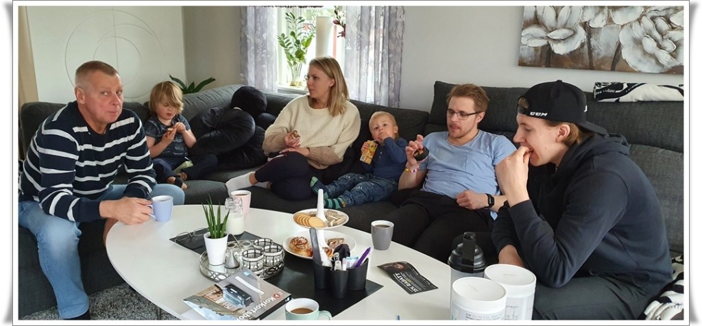 Tur att Marcus och Evelina kunde åka förbi mamma och hämta upp fikabröd. Tack för bullar och rulltårta mamma