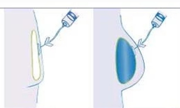 Jag fick ligga på en brits och läkaren som hette Helena tog en form av magnet för att söka upp ventilen på expandern genom huden. Hon gjorde en markering där hon skulle sticka in sprutan.