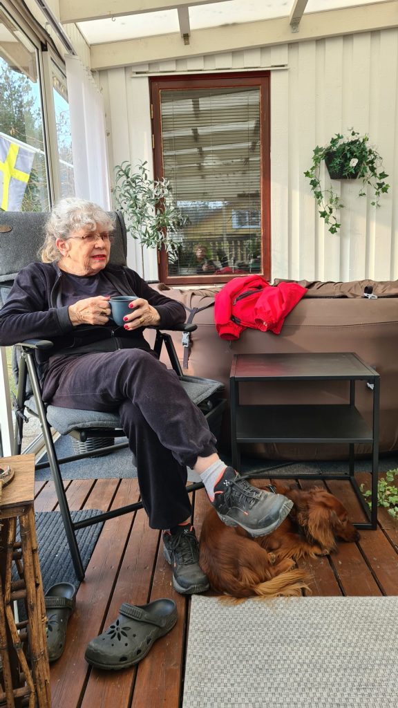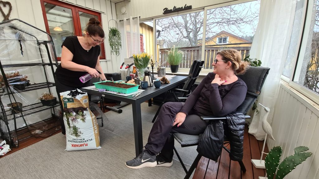 Sen åkte jag till Lena och tittade på när mamma och Lena satte frön. Jag hade redan fröat så jag fikade bara 😊