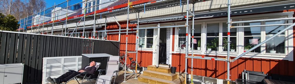 Lite trist att ha en byggställning på altanen men det blir himla bra med allt när det är klart.