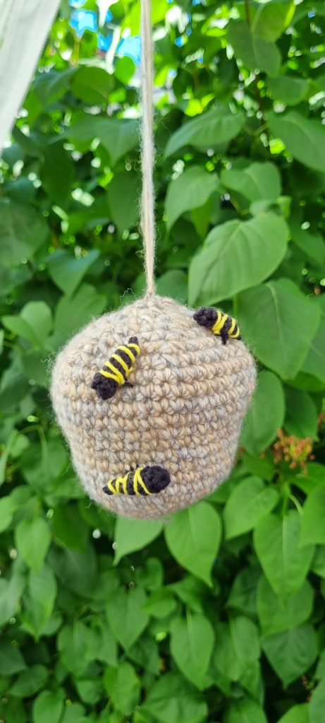 Har virkat en getingskrämma till mamma och jag fick virka fort för att hinna få den klar tills mamma och pappa kom på grillat.