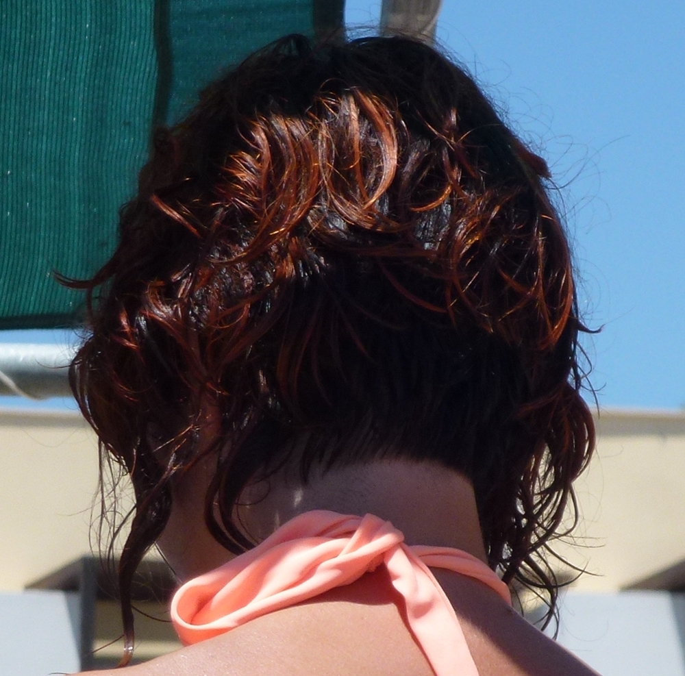 När vi var i Turkiet i somras såg jag en tjej som var så fin i håret. Jag funderar starkt på att göra nåt radikalt. Tjejen smygfotade jag vid poolen. Skäms på mig!