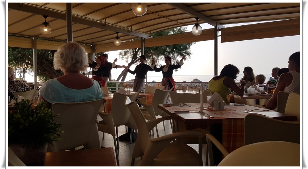Till kvällsmiddagen blev det Grekisk afton med dans. När dansarna började bjuda upp publiken blev det fart på Larsson. Han slevade i sig kakan på 3 sek, drack varannan kaffe, varannan bärs och sen tyckte han att  – Nu drar vi!  😂