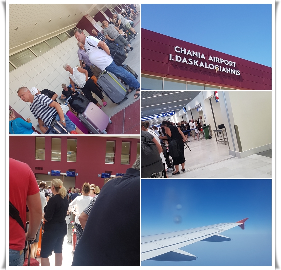 Bussen hämtade oss strax före 10, väl framme på flygplatsen fick vi stå UTE i kö i EN TIMME! 36 grader varmt, hann säkert stiga till 40 grader på den timmen. Det var tydligen tekniska problem med bagagebanden 🙄 Lökigt är bara förnamnet.