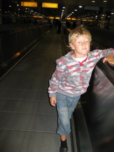 Vi åkte vidare till Quensway där vi hämtade vår resväska och åkte sedan tunnelbanan till Heathrow. Vi fick göra 2 byten och på den sista streckan blev det flera stopp efter vägen. Vi var ju redan sena och jag började känna mig lätt stressad. Vi gick det som kändes flera kilometer från tunnelbanan till incheckningen. Där fungerade inte SAS selfservice så vi fick checka in manuellt. Vi gick genom säkerhetskontrollen, Tex fick tom. ta av sig skorna men pep för en gångs skull inte. Det gjorde däremot Anton, säkerhetsvakten talade om för oss att han måste kolla Anton och eftersom han är barn så måste vi titta på. Det var inga problem så vi gick vidare och kollade på avgångarna och vårt flightnr sa: Go to gate