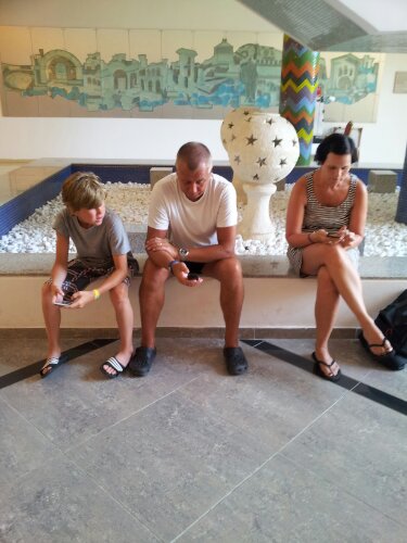 Häromkvällen var vi in till byn på shopping och det kan vara skönt att vila en stund. Shoppa är inte Antons favoritsysselsättning och han gjorde helt klart att han INTE kommer att lämna hotellets portar förrän vi åker hem 😀