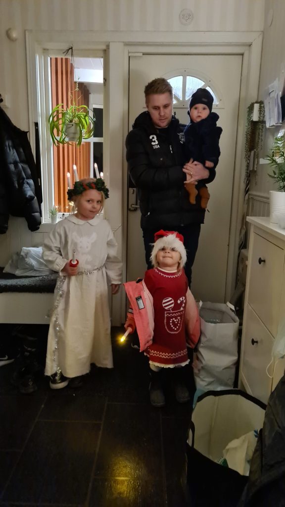 Vi åkte hem och Marcus kom med barnen som lussade och sjöng så fint 🥰