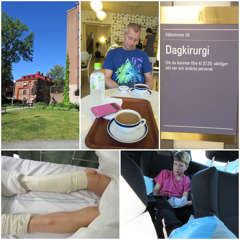 Aja, nu är det gjort och vi får hoppas att det blir bra. 2 veckor gips utan att stödja på foten följt av 4 veckor med nån plastortros pjäxa (typ).