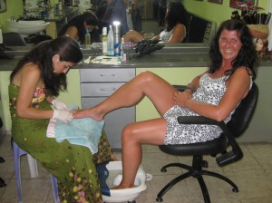 Turkarna vänder naturligtvis och följer efter oss. Vi rusar in i den ena affären efter den andra och håller samtidigt utkik mellan hyllorna om dom är kvar. Vi gick tillbaka igen och dom efter, började prova skor som vi inte alls skulle ha. Försäljaren frågade mig som var helt okoncentrerad på skorna om dom var bra? Öh, va? -No, No! Han plockade fram nya och inget par dög. Vi drog vidare och började fundera på hur vi skulle ta oss ur det där.