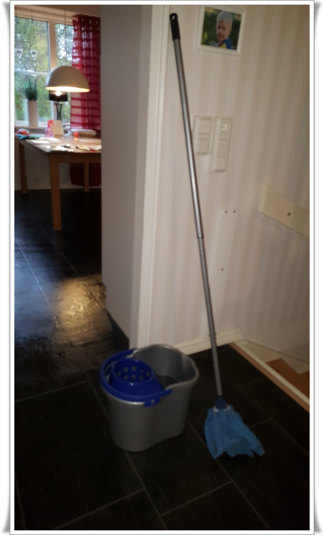 Jag en tallrik makaroner med smör och salt. Dammsög och skurade golv. Dötråkigt men ett måste.